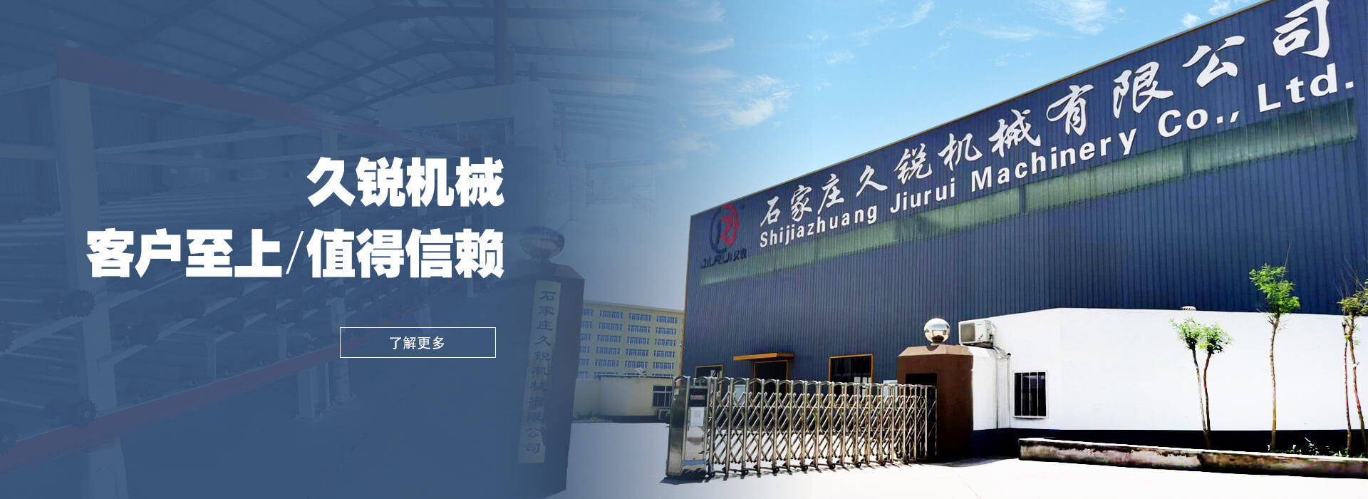 石家莊久銳機械有限公司是2018年籌建,集設(shè)計、制造、銷售新型建材機械設(shè)備于一體的民營企業(yè),可提供精準(zhǔn)運行的紙面石膏板生產(chǎn)線、石膏粉生產(chǎn)線、礦棉吸音板生產(chǎn)線、硅酸鈣板生產(chǎn)線、水泥壓力板生產(chǎn)線等建材設(shè)備的方案及先進的設(shè)備?! 」緭碛型陚涞纳a(chǎn)體系,技術(shù)一流的員工隊伍,配有成套加工設(shè)備100余臺套,斥巨資引進大型數(shù)控龍門銑床、數(shù)控鏜床、數(shù)控加工中心、數(shù)控機床等高端設(shè)備,努力把機械零部件的制造能力達到高效、精準(zhǔn),為“久銳”牌高性能整機提供堅實的保障;進而使我公司提供高質(zhì)量、高性能、高效率、節(jié)能環(huán)保、品質(zhì)卓越的生產(chǎn)線于客戶。使客戶得到先進的生產(chǎn)技術(shù)、精湛的工藝流程、優(yōu)良的產(chǎn)品質(zhì)量、真誠及時到位的售后服務(wù)。...